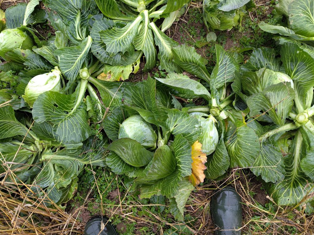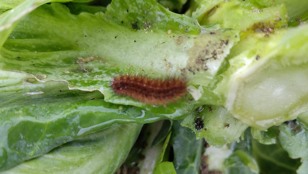 | Liebe Ernteteiler und HappyHennen-Paten, heute haben wir bei Nieselschneeregen richtig reingehauen, um die Köhler vom Beet zu holen, bevor es am Wochenende unter -10 Grad bekommt und die Köhler zu Eislollis werden. Da wir die Fähigkeit das Wetter oder wenigstens den Frost durch Beobachtung vorherzusagen, so wie die meisten Menschen der Industrienationen leider nicht haben, sind wir von den Wetterprognosen in den Medien abhängig. Die haben bis gestern immer maximal – 4 Grad vorhergesagt. – 4 ist auch schon kalt, aber da überleben die Winterkulturen noch, wenn sie mit Vlies abgedeckt werden. Bei -10 Grad hilft aber kein Vlies mehr und wir müssen bangen, dass es nicht ins Lager reinfriert. Wie muss das vor 150 Jahren gewesen sein, als man das alles noch erspüren und ahnen konnte? Vermutlich war man dadurch zwangsläufig mehr im Kontakt mit seiner Umwelt und hat einfach beobachtet, was um einen herum passiert. Ist es windig, ist es klar, ist es feucht in Bodennähe, wie verhalten sich die Tiere und wie riecht die Luft? Wir kriegen das am Hof auch mit, aber wir können daraus nicht drohenden Frost ableiten. Der Altbauer kann es auch nicht, aber er meint, sein Vater konnte es noch, sein Großvater auf jeden Fall. Wir wissen nicht, ob die sich auch so oft geirrt haben wie die Wetterprognosen heute, aber wir merken auf jeden Fall, dass wir dieses Wissen oder Können vermissen, dass es uns fehlt. Naja, den Weißkohl haben wir geschafft zu ernten. Ihr bekommt morgen einen, der schon bisschen Frost oben abbekommen hat. Dem fehlt sonst nicht, ihr könnt ihn nur nicht bis 2026 lagern. Esst ihn am besten roh, weil er ist extrem frisch, knackig und saftig. Und schaut wieder mehr in den Himmel und riecht an der Luft oder guckt auf den Boden. Wir haben heute beim Schauen im Kohl einen „Zimtbär“ entdeckt, s. Foto ganz unten. So originell heißt die braune behaarte Raupe aus der mal ein Falter wird. Und holt die Blumentöpfe rein, es wird am Wochenende zapfig werden… |