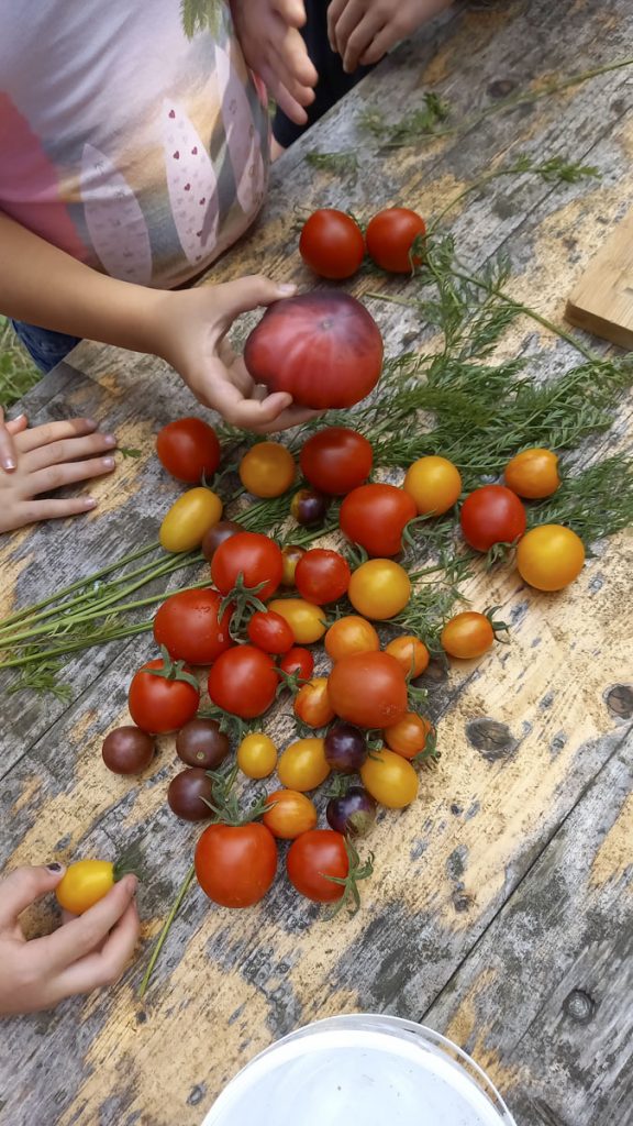 Im Sommer wird’s bunt mit Tomaten, Gurken, Bohnen, Mangold, Mais, Brokkoli und vielem mehr.